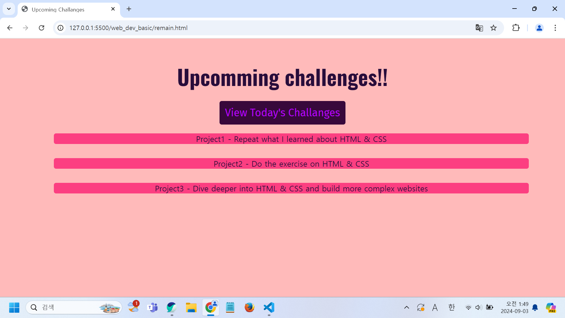 https://dash758.tistory.com/12 [웹 개발 기초] 웹 개발 7일차 (CSS 박스 모델, HTML 구조, 선택자와 결합자, 클래스, 블록과 인라인)https://dash758.tistory.com/11 [웹 개발 기초] 웹 개발 6일차 (라이브 서버 적용, HTML의 목록, 스타일 다시 꾸미기)https://dash758.tistory.com/10 [웹 개발 기초] 웹 개발 5일차 (이미지 삽입 및 스타일링, 배경dash758.tistory.com지난 시간에는 컨텐츠가 갖는 공간인 CSS 박스 모델, 헤더 섹션과 메인 섹션을다룬 HTML 구조, 선택자와 결합자, 클래스, 블록과 인라인에 대하여 알아보습니다.이번 시간에는 블록&인라인, 블록 상에서만 발생하는 여백 겹침, 그림자 추가하..
